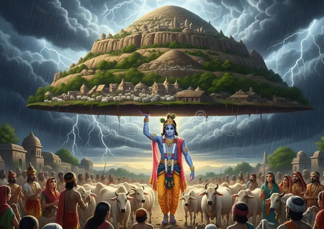 पुनि नख पर प्रभु गिरिवर धारो। आओ दीनन कष्ट निवारो॥