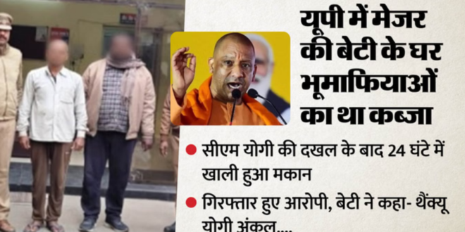मुख्यमंत्री योगी आदित्यनाथ से शिकायत करने के 24 घंटे के भीतर मेजर की दिव्यांग व बीमार बेटी का मकान कब्जा मुक्त कराया गया। कब्जा करने वाले चंदौली के दोनों भूमाफिया के खिलाफ राजधानी के गाजीपुर थाने में एफआईआर दर्ज की गई। लखनऊ पुलिस के इनपुट पर चंदौली पुलिस ने बृहस्पतिवार को दोनों आरोपियाें को गिरफ्तार भी कर लिया।