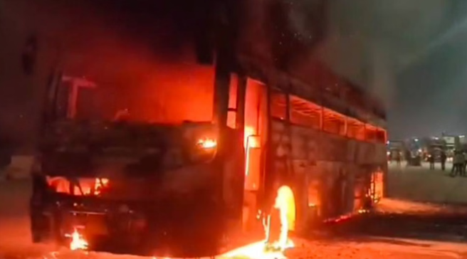 लखनऊ: आगरा-लखनऊ एक्सप्रेसवे पर चलती बस में लगी आग