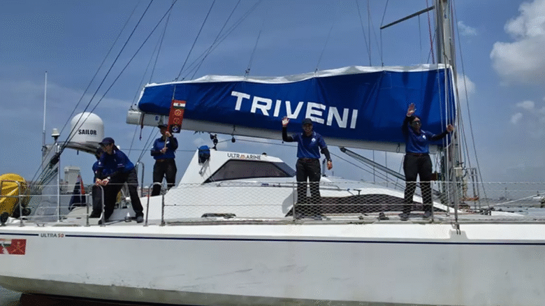 जबकि रक्षा मंत्रालय ने बताया, ‘अगले नौ महीनों में 10 महिला अधिकारी स्वदेशी नौकायन पोत आइएएसवी त्रिवेणी से लगभग 26 हजार नॉटिकल मील की यात्रा करेंगी। वे दो बार भूमध्य रेखा को पार करेंगी और तीन प्रमुख केप लीउविन, हॉर्न, और गुड होप को पार करेंगी।
