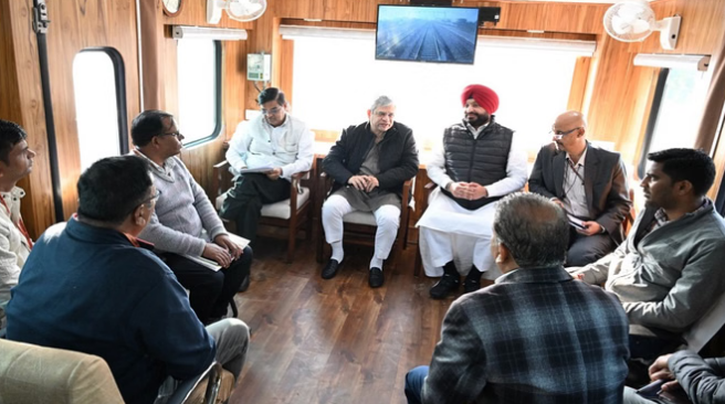 रेल मंत्री अश्विनी वैष्णव ने शुक्रवार सुबह रेल राज्य मंत्री रवनीत बिट्टू के साथ दिल्ली से चंडीगढ़ तक रेल खंड का निरीक्षण किया। यह निरीक्षण विंडो ट्रेलिंग के माध्यम से किया गया। इस दौरान उन्होंने रेल लाइन की सुरक्षा में जुड़े कर्मचारियों से पूछताछ की और ट्रैक मेंटेनर पीडब्ल्यूआई तथा सिग्नल विभाग के कर्मचारियों से भी चर्चा की। सभी कर्मचारियों ने बातचीत के दौरान फील्ड में काम को लेकर अपने अनुभव मंत्री के साथ साझा किए।